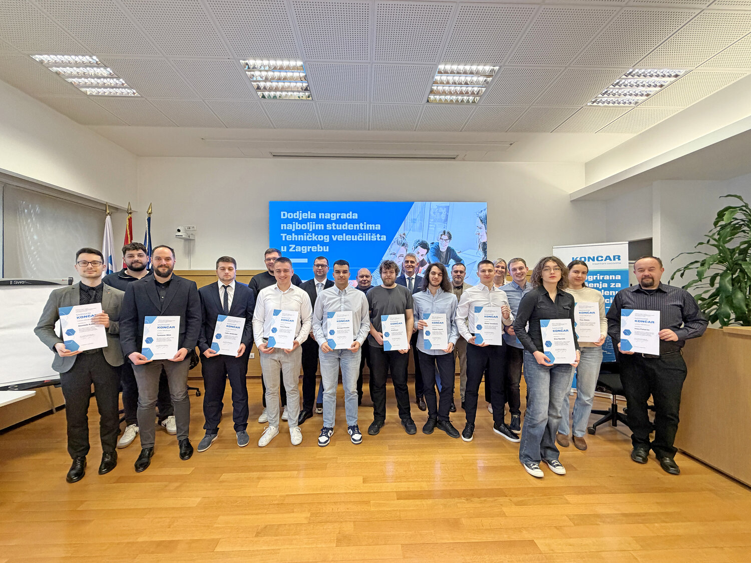 Zagreb, 3. veljače 2025. (GIA) – KONČAR je u ponedjeljak 2. veljače povodom 105. obljetnice od svog osnutka ponovno ugostio profesore i studente Tehničkog sveučilišta Zagreb (TVZ) na tradicionalnoj dodjeli „KONČAREVE nagrade“. Domaći tehnološki lider još od 2004. godine dodjeljuje ovu vrijednu nagradu i priznanje najuspješnijim studentima TVZ-a svih studijskih godina pod geslom „Najbolja investicija je investicija u ljude“. S ciljem nagrađivanja i daljnjeg poticanja izvrsnosti, KONČAR je i ove godine nagradio 18 studenata sa stručnih studija Elektrotehnike, Strojarstva, Mehatronike, Računarstva i Informatike, a nagrade im je osobno uručio predsjednik Uprave KONČARA, mr. sc. Gordan Kolak.